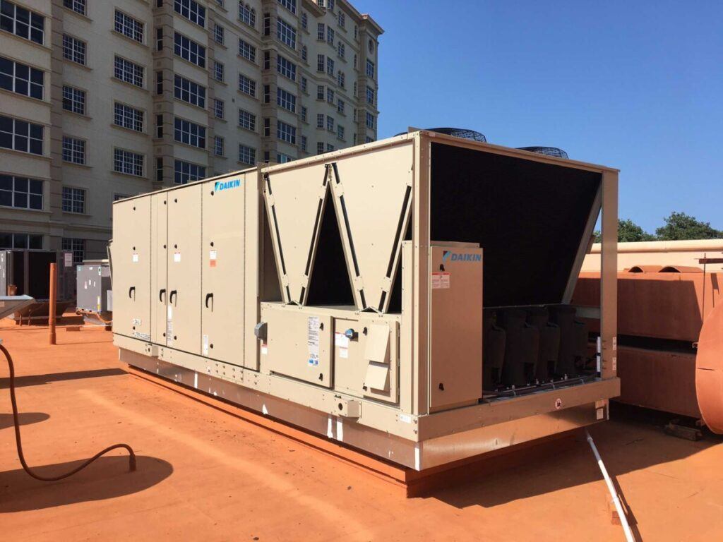 Most like‑for‑like rooftop swaps finish in one day, including crane lift, curb adapter installation, controls wiring, and start‑up commissioning. Large VRF or chilled‑water retrofits can range from one to three weeks.
